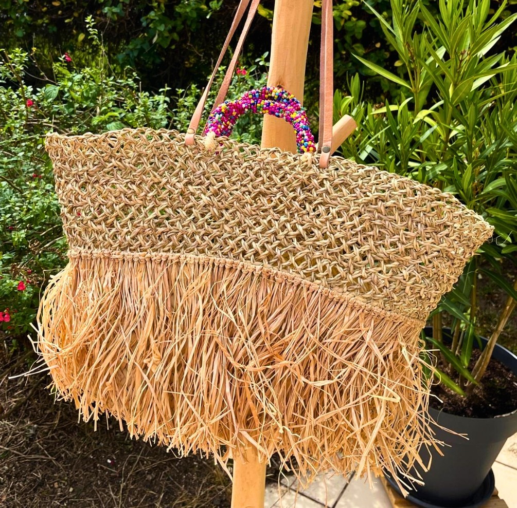 - Unique : Chaque sac est unique grâce à son tressage artisanal et ses anses perlées