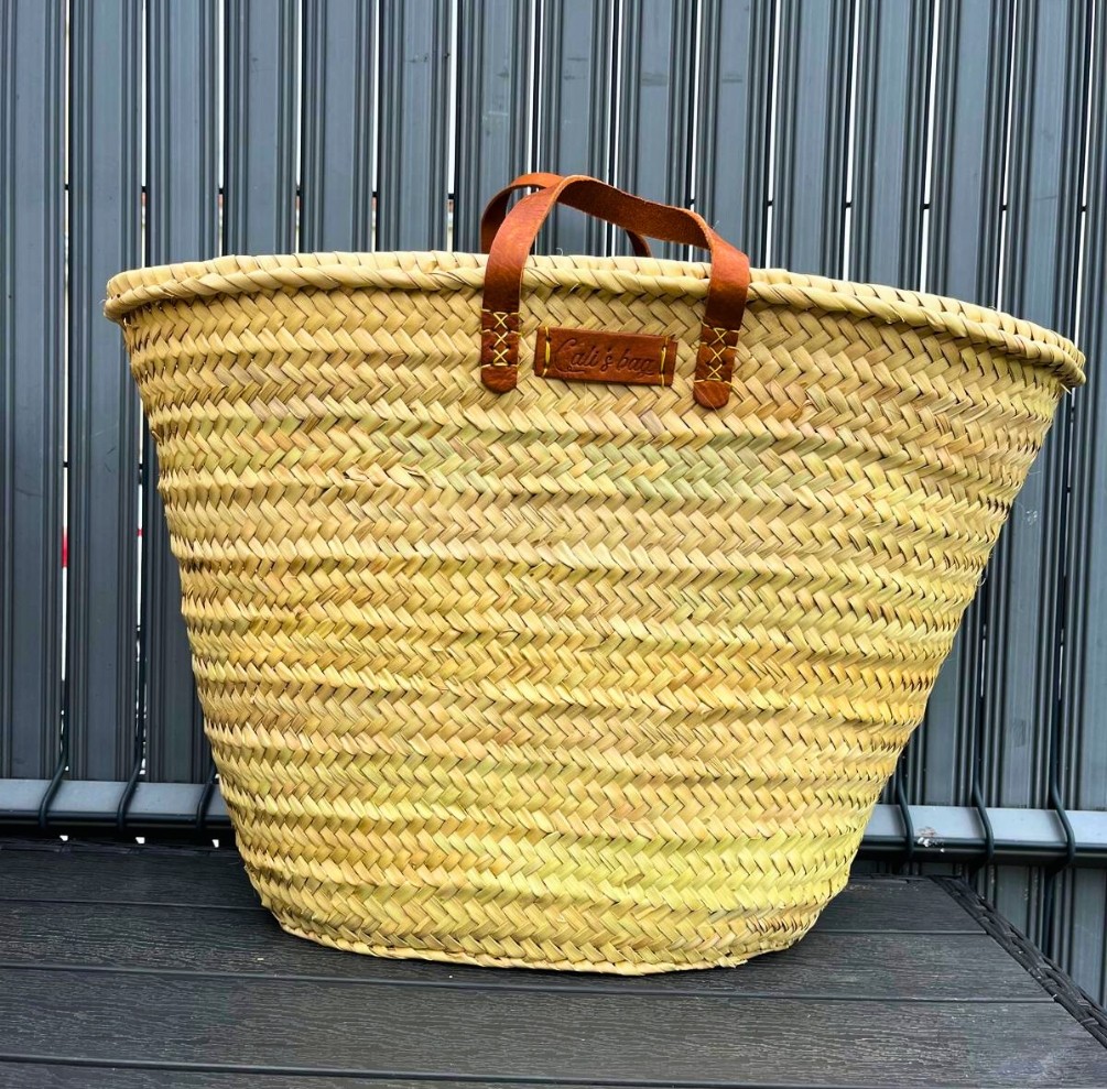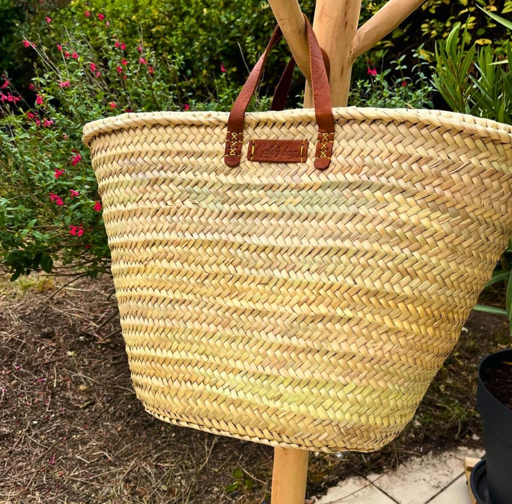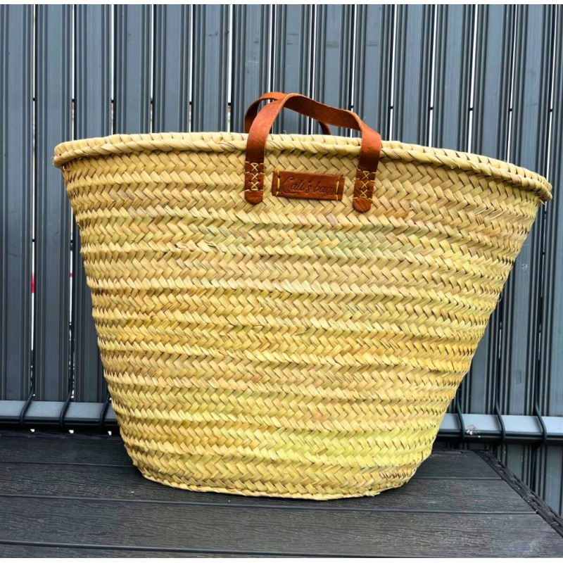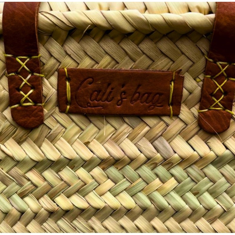 Grand Sac en Palmier avec Anses en Cuir et Étiquette Cali's Bag