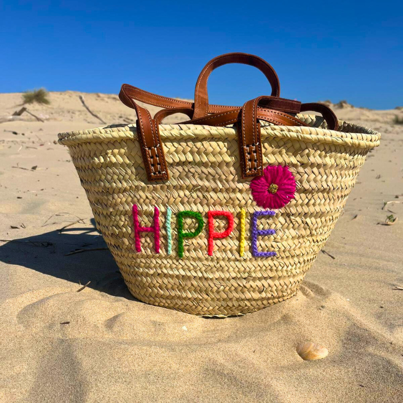 Sac en palmier avec inscription "HIPPIE"